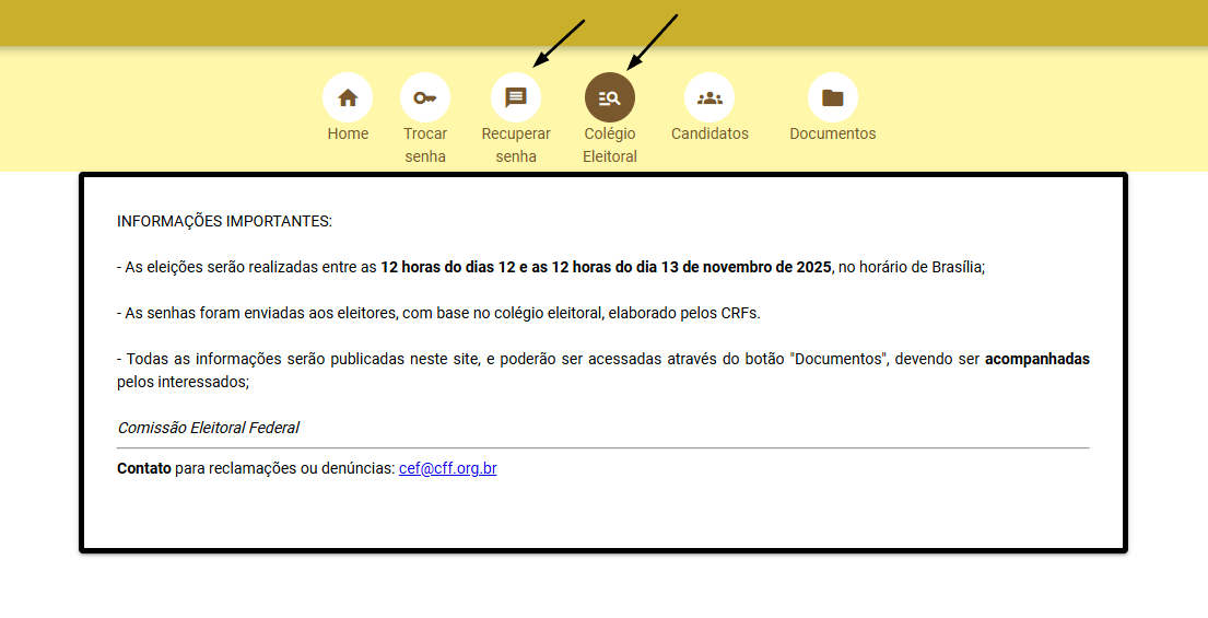 Lembrando que para receber a senha provisória você deve fazer parte do Colégio Eleitoral (consulte) , caso seu nome não esteja lá, você não está apto a votar. Em caso de dúvidas, entre em contato com o CRF-PR - 41 3363 0234