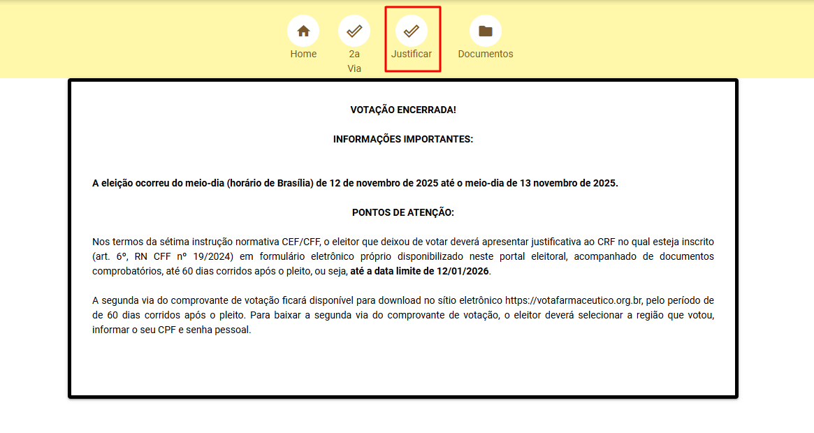 Eleições do Sistema CFF/CRFs: Prazo para justificativa e emissão da segunda via do comprovante de votação